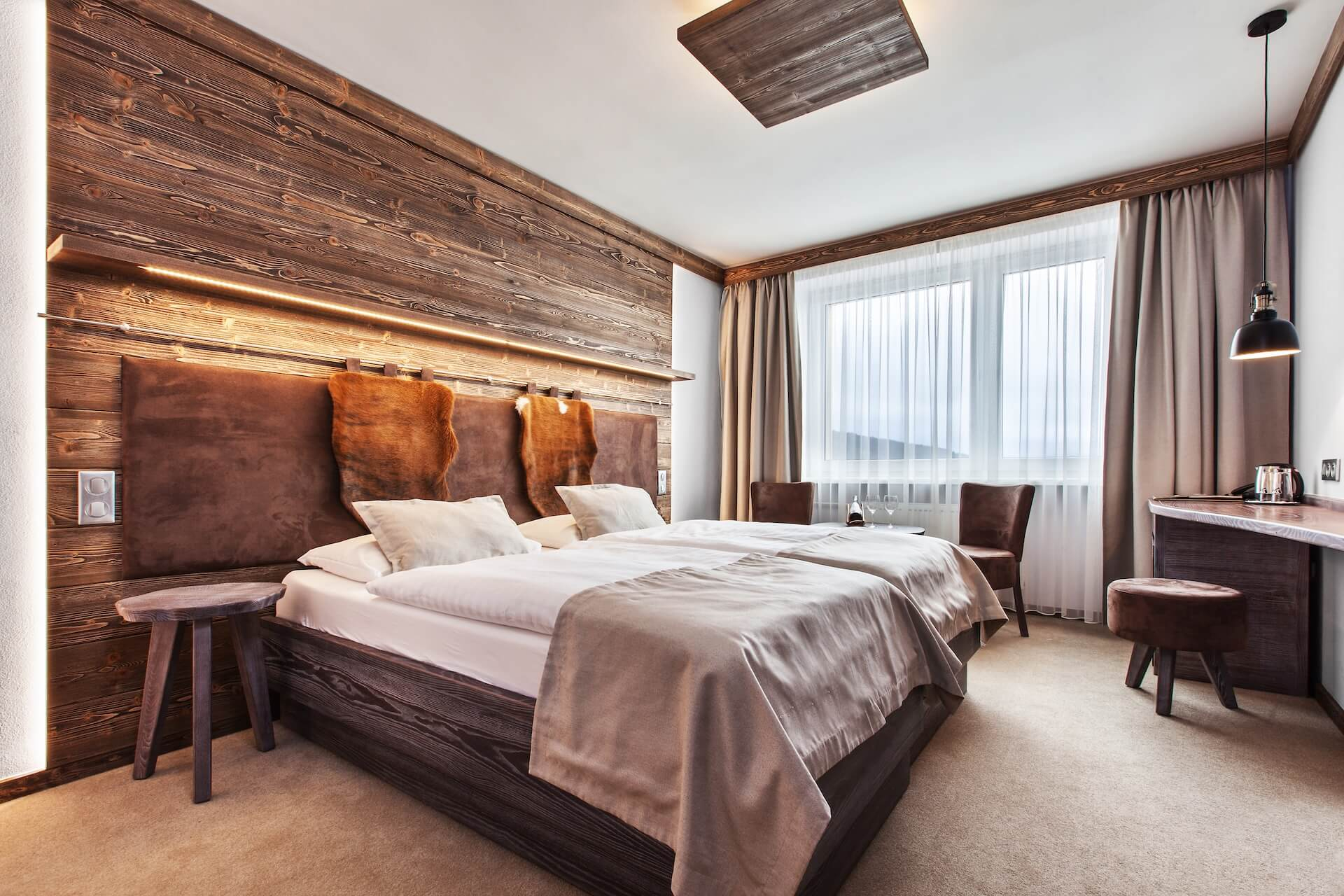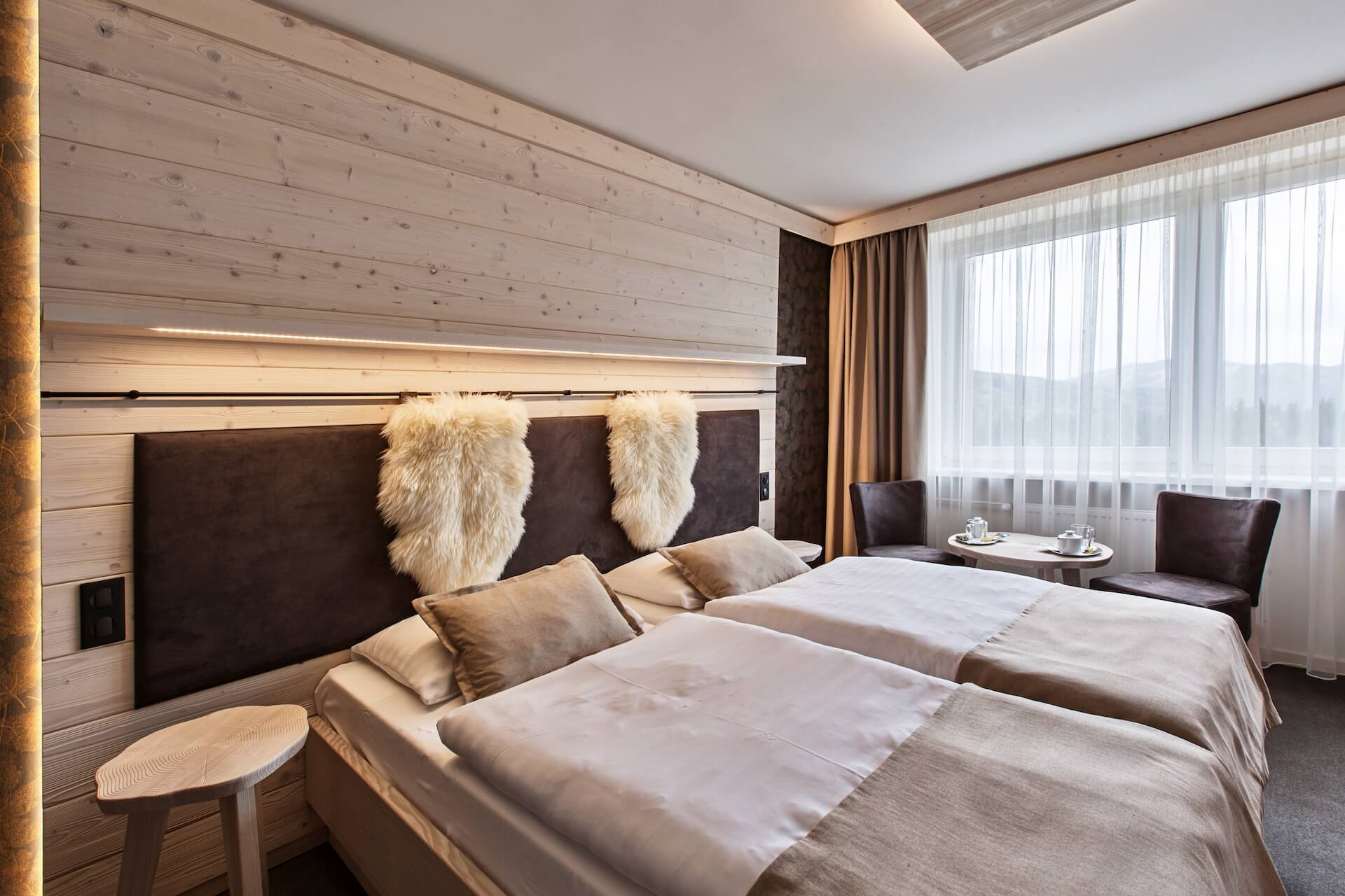 Panorama Classic rooms are on the south side of the hotel, so they are sunny all day long. In the morning, gentle sun rays will wake you, and in the evening you can watch the sunset. The rooms are cozy, yet you will find everything you need for a comfortable stay. They are ideal for couples or individuals, suitable for rest after hiking or skiing. The furnishings are modern, and details are focused on nature with memory foam mattresses.