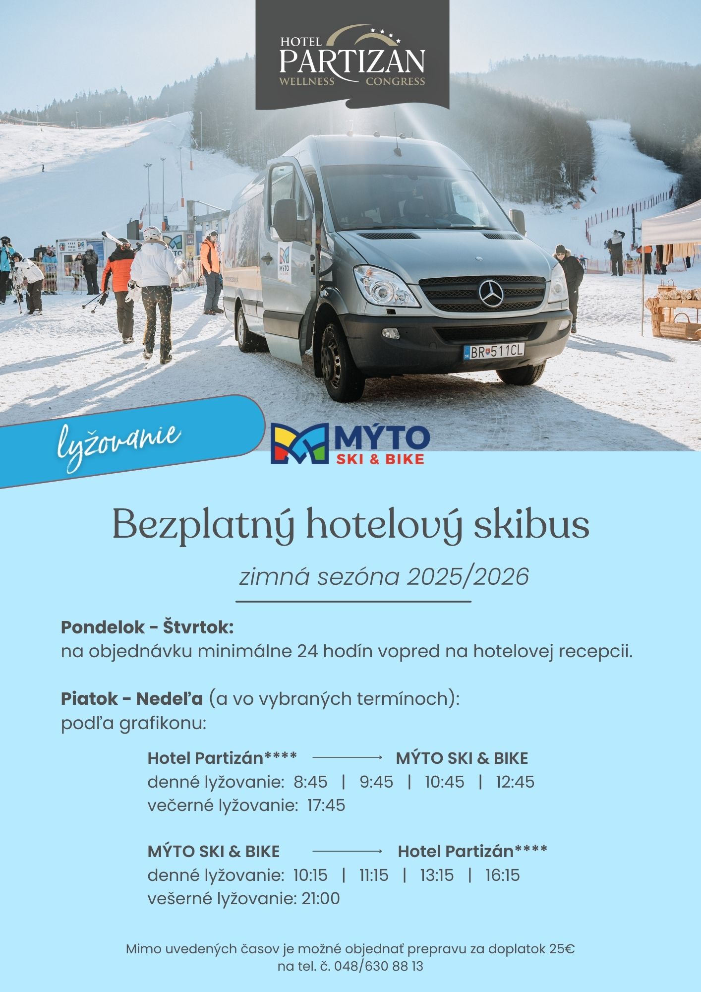 Počas zimnej sezóny 2025/2026 prebieha v dňoch streda - sobota. Počas večerného lyžovania premáva skibus z hotela do lyžiarskeho strediska.