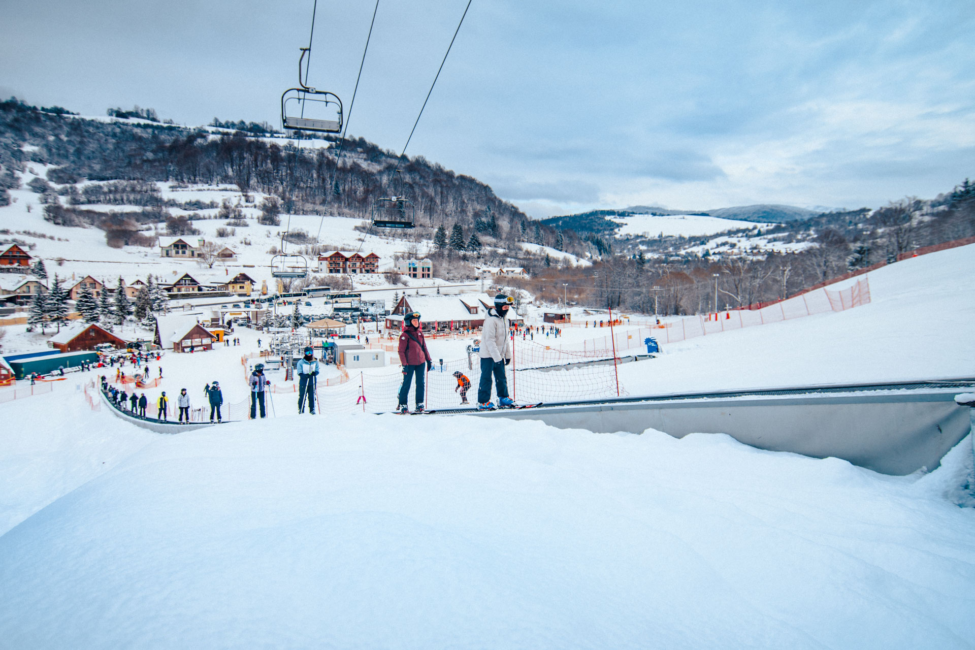 Lyžiarska škola, lyžiarsky svah pre úplných začiatočníkov s posuvným pásom, fun zóna a detský kútik.